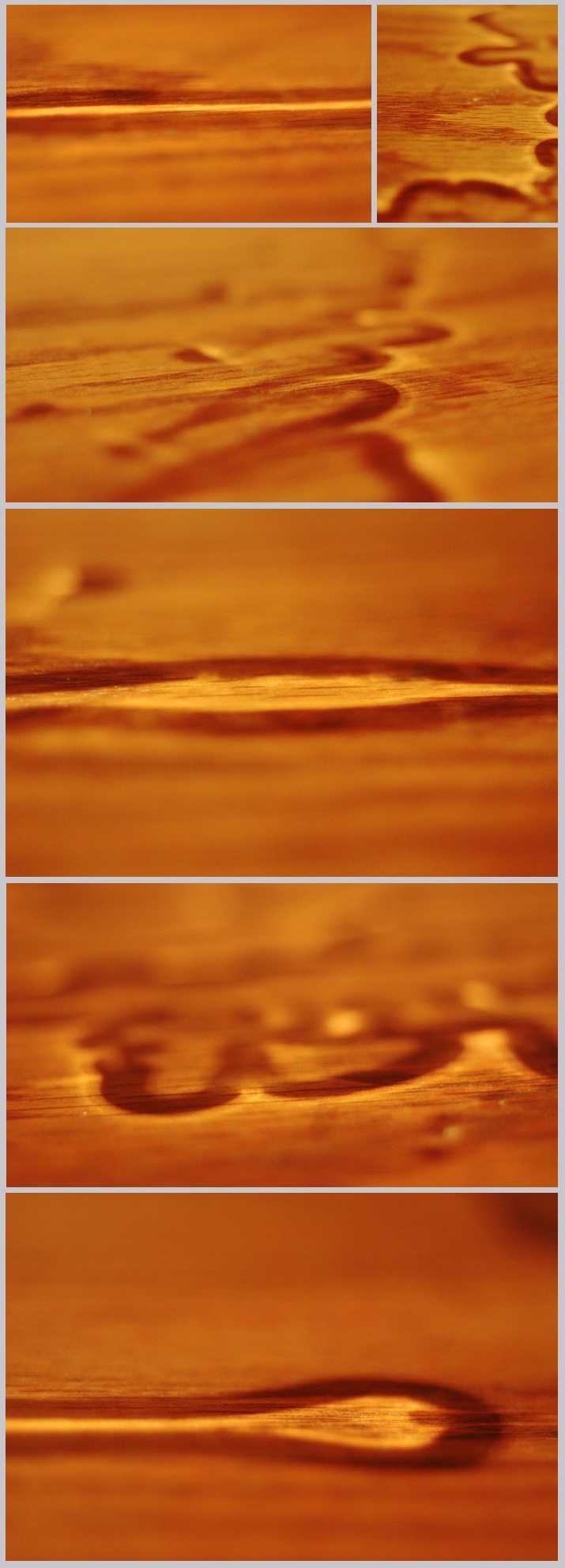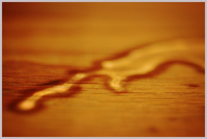 As I perused the internet looking for inspiration I caught sight of my soda on the coffee table. It had condensation around the bottom of the cup and I noticed the light pattern being projected on the wood shelve below. I thought is was quite pretty. I began to mess with the water a bit, making shapes with it.